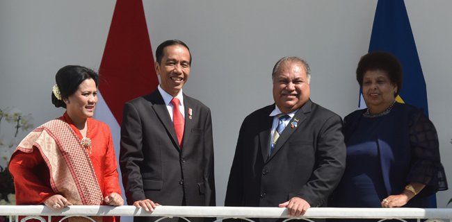Selanjutnya, Presiden Jokowi dan Presiden Waqa memeriksa barisan kehormatan diiringi lagu kebangsaan Nauru dan Indonesia serta dentuman meriam sebanyak 21 kali.