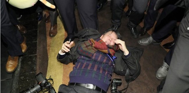 Para wartawan memprotes hal itu dan salah satu dari mereka, yang merupakan seorang wartawan foto, dibawa keluar dari tempat tersebut oleh sekitar 15 penjaga keamanan China. Dia mengalami pemukulan kendati ada protes keras dari rekan-rekannya sesama wartawan dan pejabat Korea Selatan, termasuk yang berasal dari kantor kepresidenan Cheong Wa Dae.