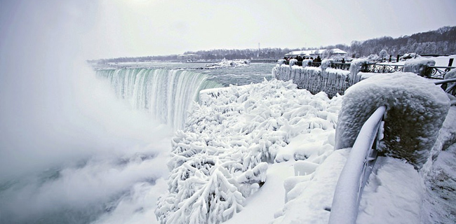 Meskipun cuaca beku mengancam, namun banyak fotografer mengabadikan momen cantik di air terjun Niagara ketika es beku yang berkilau dan tumpukan salju putih cerah.