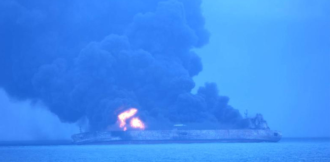 "Kecelakaan itu menyebabkan kapal tanker minyak SANCHI terbakar, miring ke kanan, kehilangan kontak dengan kru," begitu keterangan kementerian tersebut.