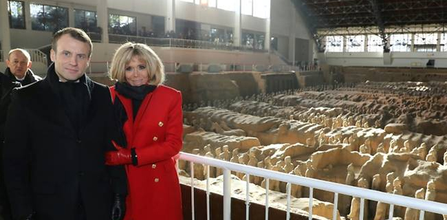 Macron memulai kunjungan tiga hari di Xian sebagai isyarat untuk proyek New Silk Road karya Presiden China Xi Jinping. New Silk Road ini adalah sebuah inisiatif ambisius untuk menghubungkan Asia dan Eropa melalui jalan darat, kereta api dan laut.