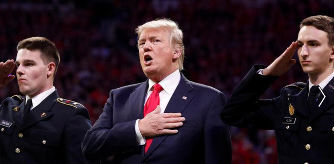 Pendukung Trump mengatakan bahwa mereka bangga melihat Trump berdiri dengan tangannya di atas dadanya. Namun para kritikus mengatakan bahwa Trump seolah-olah melupakan lirik lagu kebangsaan.