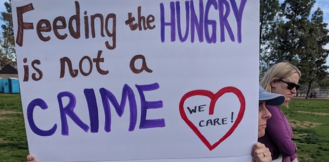 "Ini mencegah saya untuk menggunakan hak saya untuk berbagi makanan dengan orang-orang yang membutuhkan, yang merupakan ungkapan pidato dengan tindakan," katanya seperti dimuat