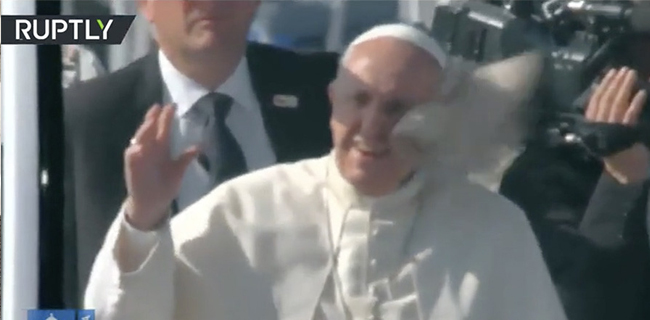 Benda itu mengenai sisi kiri wajahnya saat dia melintas di Santiago O'Higgins Park. Paus tampaknya tidak terluka. Dia tetap mempertahankan senyuman dan melambai pada warga Santiago.