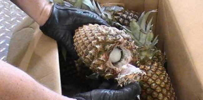 Penyelundupan berhasil diungkap saat polisi menyita kontainer pengiriman berisi nanas segar. Hasilnya, polisi menemukan sekitar 745 kg kokain di dalam buah nanas.