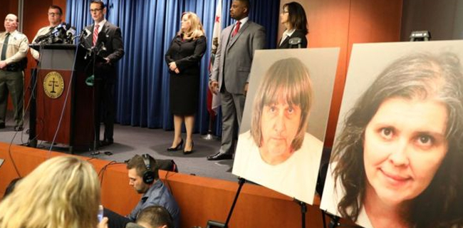 Orangtua tersebut adalah pasangan David Turpin berusia 56 tahun dan Louise Turpin berusia 49 tahun. Mereka ditangkap setelah satu anak perempuan mereka berhasil kabur dari rumah dan melaporkan kepada polisi.