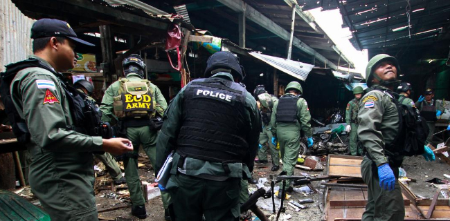 Diketahui wilayah Narathiwat, Pattani dan Yala di Thailand merupakan rumah bagi pemberontakan yang telah berlangsung lama oleh Muslim etnis Melayu yang memperjuangkan otonomi di mana lebih dari 6.000 orang telah terbunuh sejak 2004. Belum ada kelompok atau pihak yang mengklaim serangan tersebut.