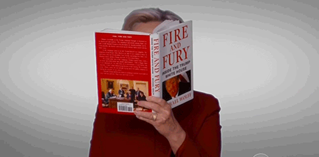 Video tersebut menunjukkan Clinton dan beberapa musisi terkenal, termasuk Cher dan Snoop Dogg, membaca penggalan kalimat dari buku "Fire and Fury" karya Michael Wolff yang kontroversial.