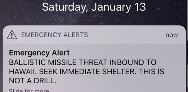 Pesan peringatan soal adanya rudal yang diterima warga Hawaii 13 Januari yang lalu diketahui menyebabkan kepanikan meluas. Hal itu semakin buruk karena pihak berwenang baru meralat peringatan tersebut 38 menit setelah peringatan dilepaskan.