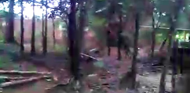 Rekaman tersebut menunjukkan tas terpal setengah terkubur di tempat terbuka hutan, dengan kaki manusia yang membusuk terlihat menonjol dari salah satu tasnya.