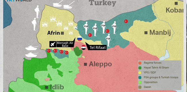 Turki sendiri diketahui meluncurkan sebuah kampanye militer di Afrin bulan lalu, dalam upaya untuk mengusir milisi Kurdi. Daerah kantong tersebut berada di bawah kendali partai Uni Demokratik (PYD) dan YPG, yang merupakan mitra koalisi yang didukung Amerika Serikat melawan kelompok militan ISIS.