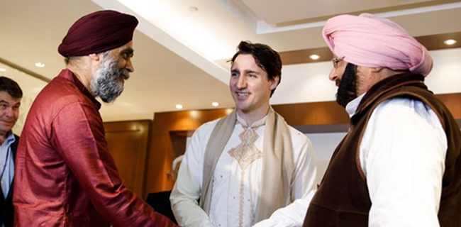Trudeau bergabung dalam pertemuan tersebut oleh Harjit Sajjan, menteri pertahanan Kanada, yang adalah Sikh.