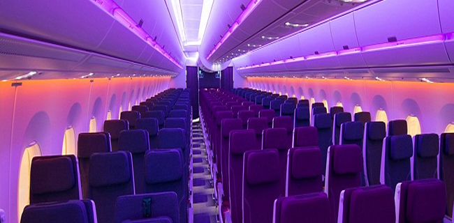 Airbus juga mengklaim bahwa A350-1000 adalah kabin kembar-lorong paling tenang di langit.