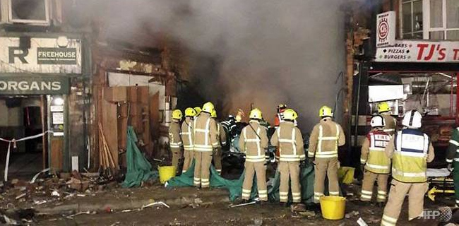 Ledakan di kota Inggris tengah pada hari Minggu malam menghancurkan sebuah supermarket dan sebuah flat bertingkat dua serta menewaskan lima orang.