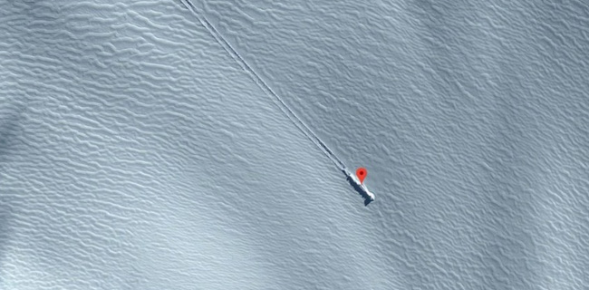 Secureteam10 menggunakan Google Earth untuk mengikuti jejak kembali ke arah yang tampaknya telah ditempuh, ke tepi sebuah gunung dimana ada beberapa gangguan di salju.