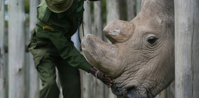 Badak putih jantan bernama Sudan itu mendapat perawatan intensif setelah jatuh sakit pekan lalu.