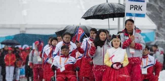 Hal ini berbeda dengan pembukaan Olimpiade Musim Dingin 9 Februari lalu di mana delegasi kedua negara berbaris di bawah satu bendera persatuan dalam parade.
