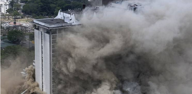 Api di Paviliun Manila Waterfront, kompleks hotel dan kasino bertingkat tinggi berkobar selama sekitar sembilan jam sebelum akhirnya bisa dipadamkan.