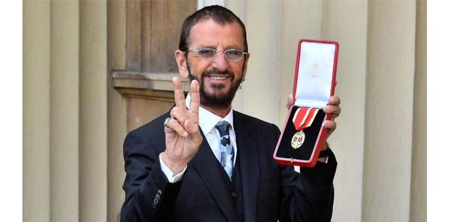 Dengan ditemani istrinya, Barbara Bach, Ringo diberi gelar ksatria oleh Pangeran William dengan pedang upacara untuk menjadi Sir Richard Starkey.