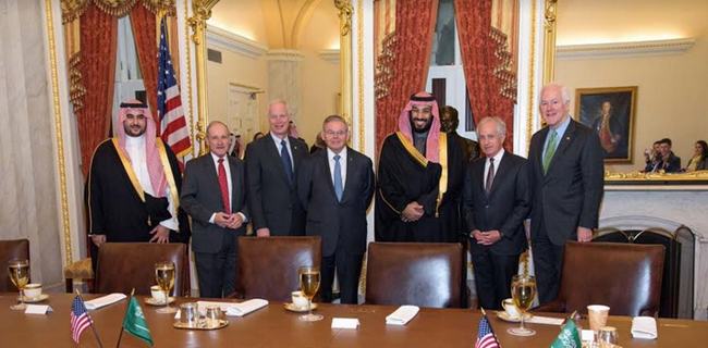 Putra Mahkota Saudi, Mohammed Bin Salman melanjutkan kunjungan kenegaraannya dengan bertandang ke Kongres untuk bertemu pimpinan sat dan DPR (Selasa, 20/3) usai bertemu Presiden Donald Trump di Gedung Putih.