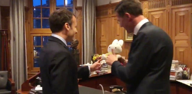 Saat bertemu Perdana Menteri Mark Rutte, Macron sempat diajak untuk mampir ke ruang kerja orang nomor satu di pemerintahan Negeri Kincir Angin itu. Kedua pemimpin ini tampak begitu akrab.