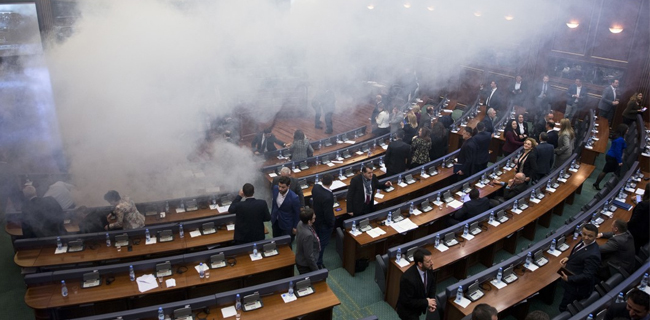 Akibatnya, bom asap itu mengeluarkan asap cukup tebal dan memaksa anggota parlemen meninggalkan ruangan