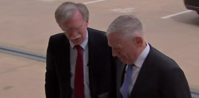 Bolton sendiri tidak menanggapinya dengan serius dan hanya tertawa ringan membalasnya sambil terus berjalan bersama Mattis.