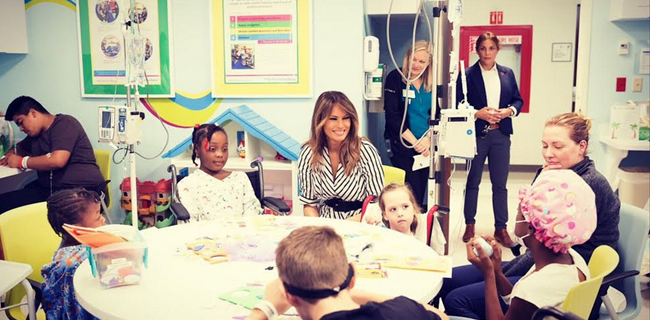 Melania memberi bingkisan paskah kepada seluruh pasien anak-anak yang ada dirumah sakit tersebut.