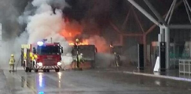 Pada Jumat malam, bandara mengatakan tidak ada cedera yang dilaporkan dan bahwa kebakaran disebabkan oleh kesalahan mesin listrik di bus.