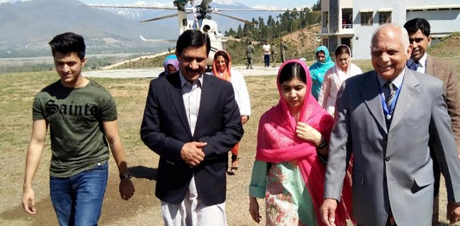 Pada Sabtu siang (31/3) ini, Malala tiba di Swat, tempat dimana ia ditembak di bagian kepala oleh Taliban pada tanggal 9 Oktober 2012.