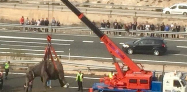 Hewan-hewan yang terluka harus diangkat oleh derek dari jalur lalu lintas.