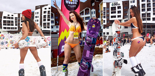 Ini adalah bagian dari festival tahunan yang dikenal dengan nama Festival ski BoogelWoogel. Festival tahunan ini dipentaskan di resor musim dingin Rosa Khutor menarik ribuan penonton dan peserta, yang berkumpul di tempat Olimpiade itu untuk menikmati pertunjukan baju renang warna-warni yang telah dilakukan untuk tahun ketiga.
