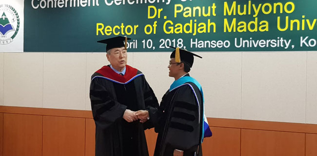 Prof. Mulyono yang tak lain adalah Rektor UGM pagi itu secara resmi telah menjadi anggota civitas academica Universitas Hanseo, dengan diberikannya gelar Doktor Honoris Causa Bidang Pendidikan dari Universitas yang cukup bergengsi tersebut.