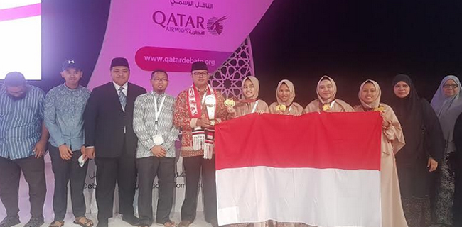 "Indonesia mengukir tinta emas di kancah Internasional sebagai Juara pertama International Schools Arabic Debating Championship 2018 untuk kategori non-Native di Qatar," ungkap Ustaz Agung Muttaqien yang merupakan manager sekaligus pelatih tim Indonesia.