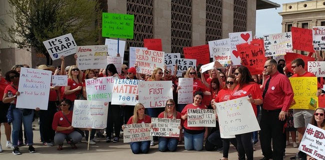 Proposal Ducey akan melihat kenaikan gaji guru rata-rata dari USD 48.723 per tahun menjadi USD 58.130 pada awal tahun 2020. Namun, aturan itu memberi kenaikan gaji kepada staf sekolah lain dan meningkatkan pendanaan untuk program sekolah lain, seperti yang diminta oleh serikat guru yang didukung oleh Demokrat.
