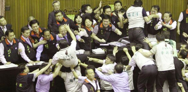 Kericuhan oleh anggota ParÂtai Kuomintang ini pun beruÂjung ricuh karena anggota parlemen lainnya ikut emosi melihat perilaku mereka yang kelewatan.