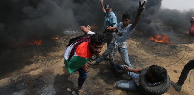 Pasukan Israel menembak mati empat orang Palestina, termasuk seorang bocah berusia 15 tahun, saat lebih dari 10.000 orang berkumpul dalam demonstrasi massal di Jalur Gaza yang terkepung menuntut hak untuk kembali bagi para pengungsi Palestina (Jumat, 20/4).