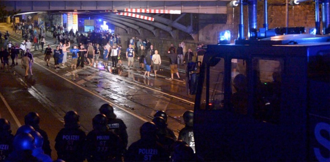 Perayaan outdoor di kota Jerman, Magdeburg tiba-tiba berakhir dengan bentrokan besar antara penggemar sepak bola dan polisi. Bentrok terjadi di jalanan dan menyebabkan puluhan polisi terluka dan lebih dari 10 fans ditangkap akhir pekan kemarin.
