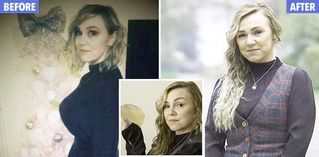 Rossington lega setelah berÂhasil melepas implan di payuÂdaranya. ***