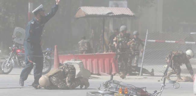 "Pembom menyamar sebagai jurnalis dan meledakkan dirinya di antara kerumunan," kata juru bicara polisi dikutip