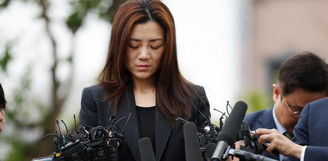 Putri bungsu bos maskapai penerbangan Korean Air, Cho Hyun-min, datang untuk dimintai keterangan oleh polisi di Seoul hari ini (Selasa, 1/5).