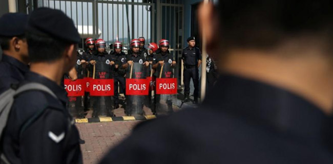 Kerumunan orang di bandara mencoba memblokir mobil yang memasuki Bandara Sultan Abdul Aziz Shah di dekat ibu kota Malaysia, tetapi ditahan oleh penjaga.