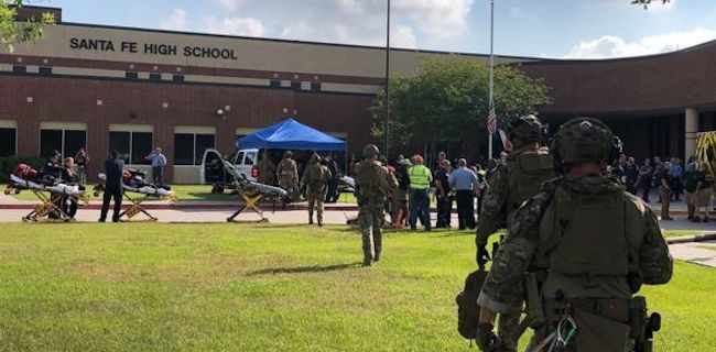 Penembakan itu terjadi di Santa Fe High School. Sebagaimana diberitakan BBC, sebanyak 10 orang tewas dalam aksi penembakan ini.