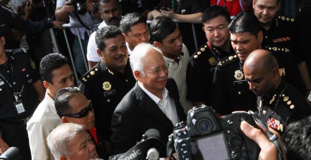 Najib yang diperiksa pada pukul 10.00 datang lebih awal 15 menit. Setiba di Kantor MACC, Kuala Lumpur, Najib yang mengenakan kemeja putih dibalut jas hitam hanya bisa melempar senyum ke media dan sesekali melambaikan tangannya.