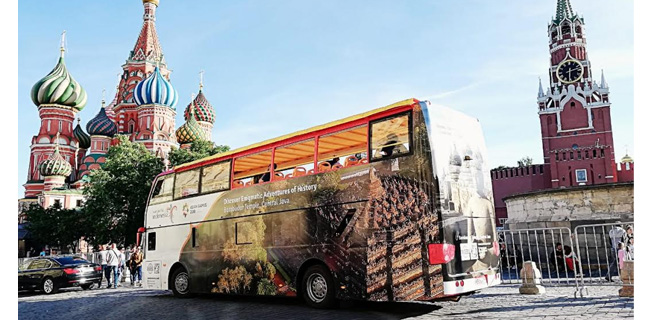 Selain melalui kedua bus tersebut, Wonderful Indonesia akan menyapa warga Moskow dan tamu ibukota Rusia ini melalui sebuah papan iklan digital di dua tempat strategis di Moskow, yaitu Novy Arbat dan Yerevan Plaza pada periode 15 Juni hingga 16 Juli 2018 mendatang.