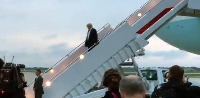 Begitu mendarat, seperti biasa, Trump langsung menulis cuitannya di twitter.
