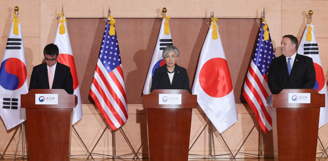 Menlu Pompeo mengatakan AS, Korsel dan Jepang sepakat untuk melanjutkan semua upaya untuk menyukseskan denuklirisasi Korut.