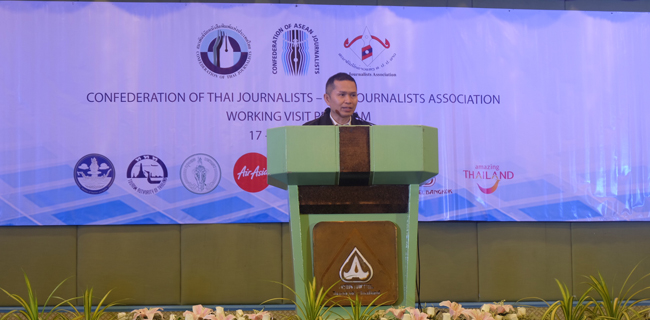 "Selamat datang semua di Thailand, tanah senyum. Ini kesempatan penting untuk kalian mendapat pengetahuan ekonomi, sosial, dan budaya selama perjalanan ASEAN tentang keragaman budaya dan alam nan indah. Destinasi wisata unik dari ASEAN," tutur Presiden Konfederasi Wartawan Thailand, Pramed Lekpetch dalam sambutan pembukanya di Hotel Asia Bangkok.