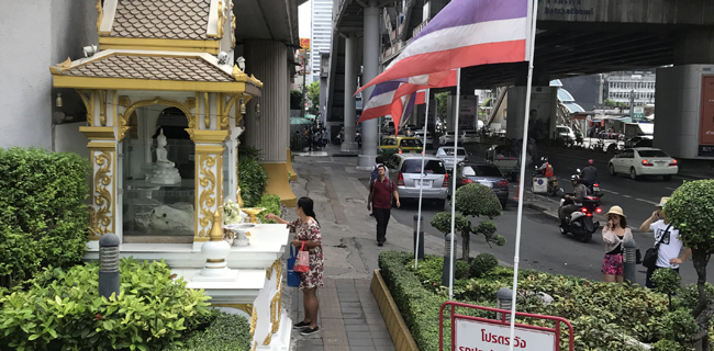 Seorang warga tengah berdoa di depan sebuah kuil kecil yang letaknya berada di tengah jantung Kota Bangkok, Thailand, tepatnya di depan Hotel Asia. Pemandangan semacam ini sangat lazim ditemukan saat anda berkunjung ke Thailand. Masyarakat setempat selalu menyempatkan diri berdoa di manapun dan dalam kondisi apapun bila melihat bangunan kecil semacam ini. Di Indonesia pemandangan seperti ini bisa juga kita temui bila berkunjung ke Bali. RMOL