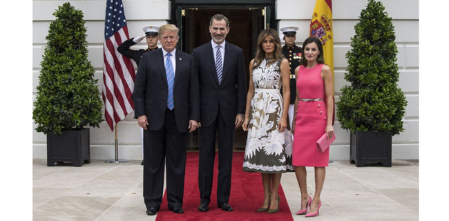 Presiden Amerika Serikat, Donald Trump, didampingi Melania Trump, menyambut kedatangan Raja Felipe VI dan Ratu Letizia dari Spanyol, yang berkunjung ke Gedung Putih.